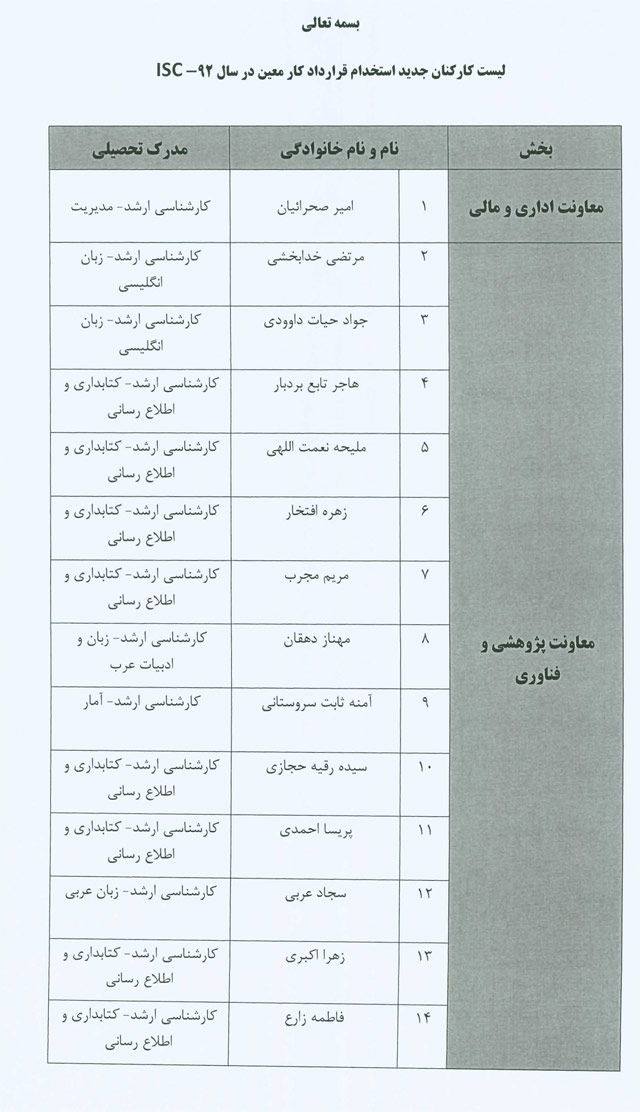 96 | بررسی میزان استفاده از ابزارهای جستجو توسط دانشجویان تحصیلات تکمیلی دانشگاه علوم پزشکی کرمان در سال 1390 | فاطمه تصدیقی، سمیرا سعیدی، دکتر اخوتی |