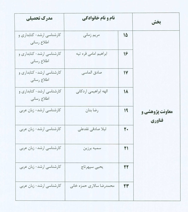 18 | بازآفرینی شرح شغل و نقش های کتابداران در کتابخانه های عمومی شهر بوشهر | سارا دخش، فاطمه مرادی، فاطمه ثوابت |